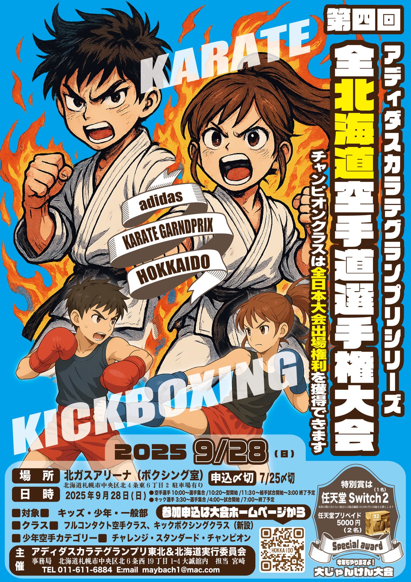 空手を通じ青少年健全を目指し…道場で【精神力】【忍耐力】を養い…直接相手に打撃を交えることで【優しさ】を学ぶ。K-1やRizinなど格闘技界活躍するトップ選手を育成することから【学校】【社会】【家庭】に素晴らしい人間を還元することまでをRoad to adidas KARATE GRAND PRIXは目標としています。Road to シリーズ北海道初開催となる今大会。沢山の皆様のご参加を楽しみにしております。